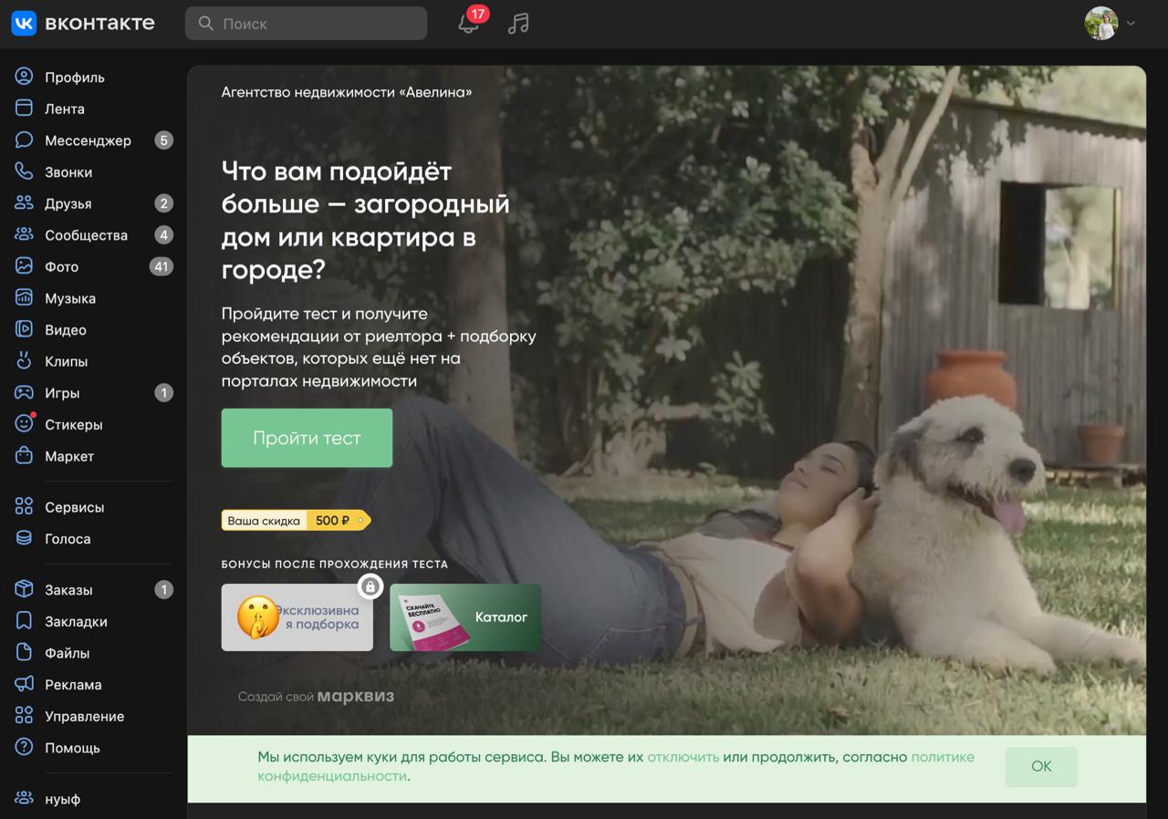 4. Если всё сделали правильно, то на странице сообщества появится кликабельная ссылка, которая будет открывать ваш созданный виджет со ссылкой на нужный квиз: