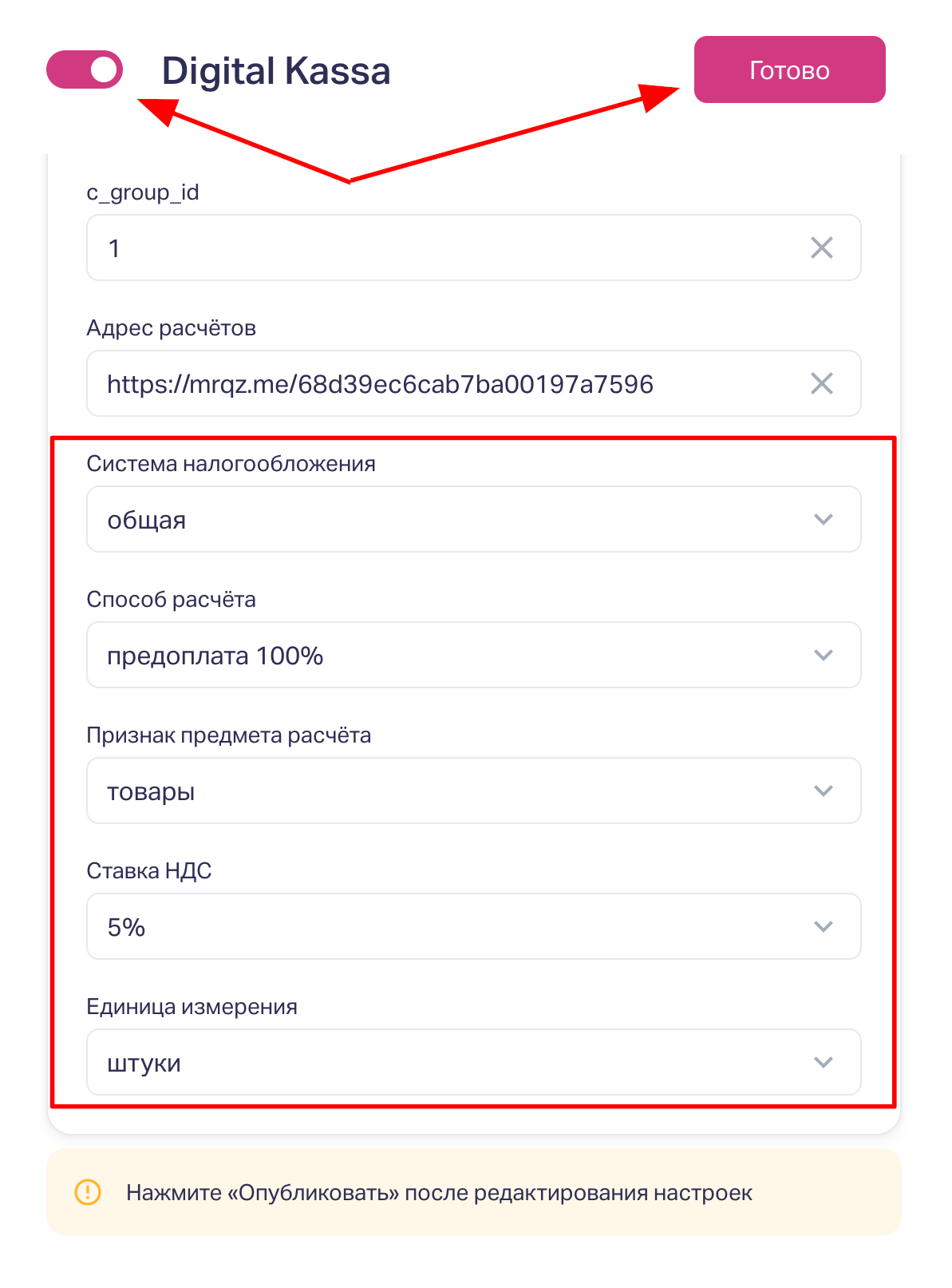 Все остальные поля в настройке также должны быть заполнены, чтобы интеграция работала корректно: