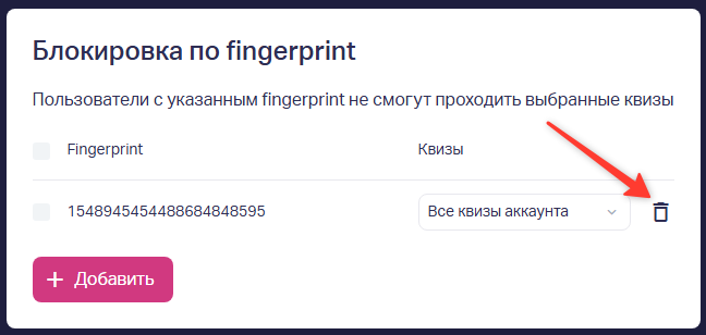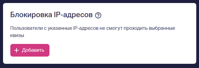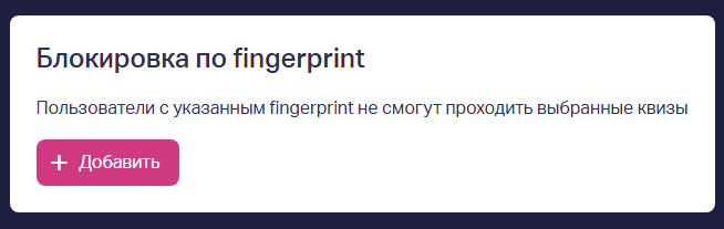 Чтобы снизить количество повторных и нежелательных заявок, в квизах предусмотрена блокировка по IP-адресу и по fingerprint (фингерпринт) — это помогает собирать только нужные лиды.