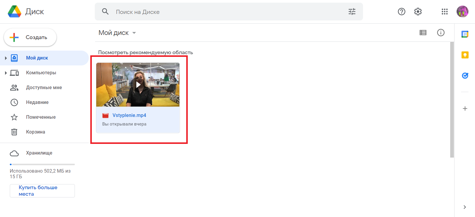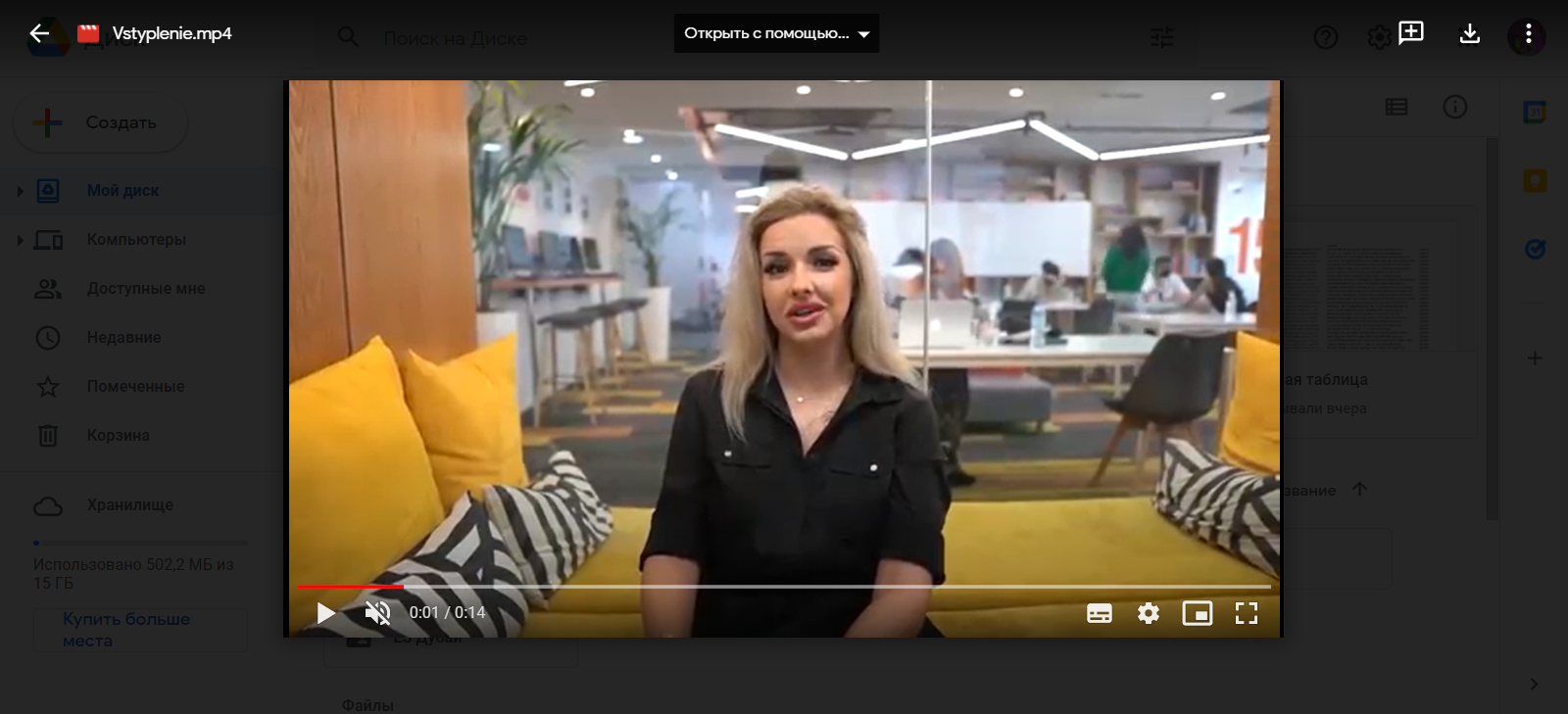 1. В Google Drive двойным кликом открываем видео, которое хотим добавить в квиз.