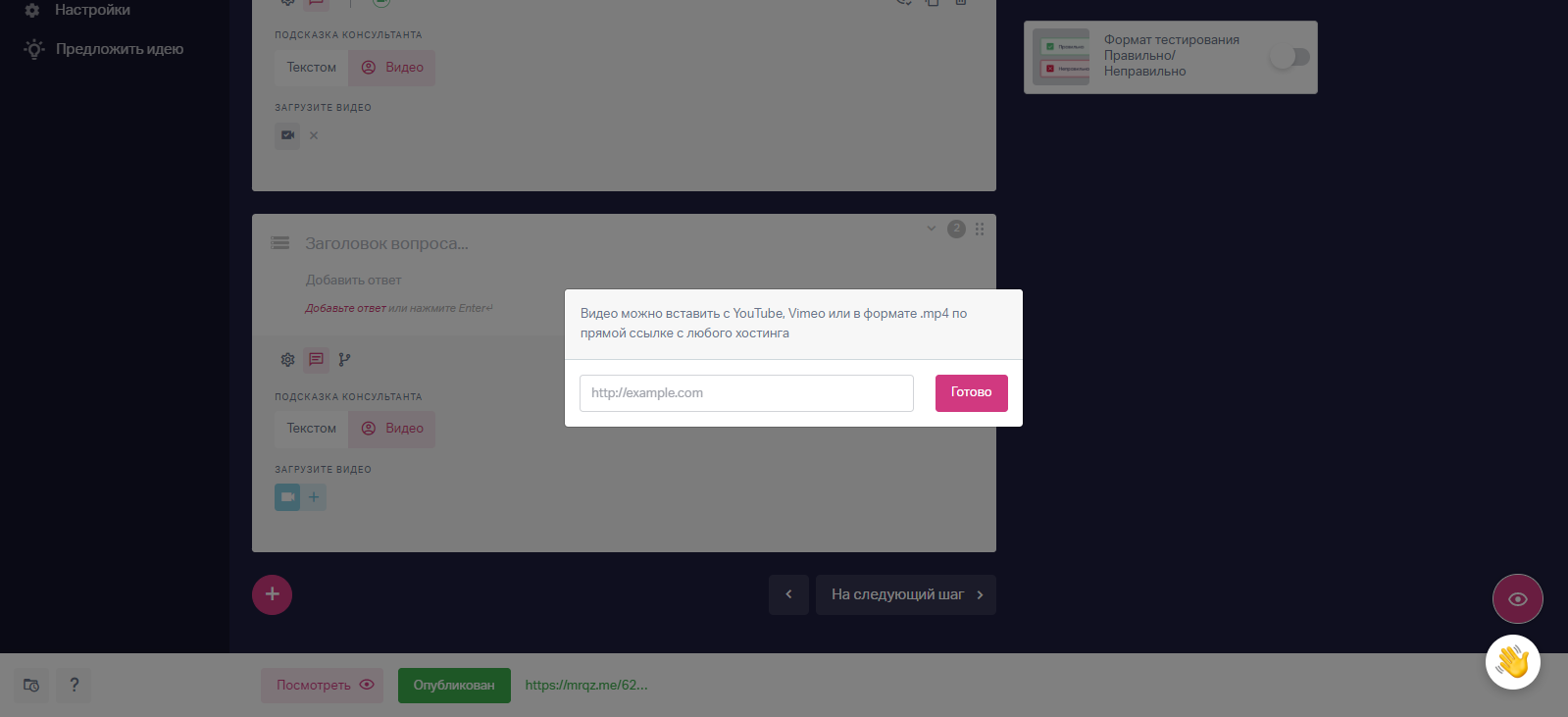 Готово. Данную ссылку можно использовать как в видео в квизе, так и для видео- консультанта 🙂